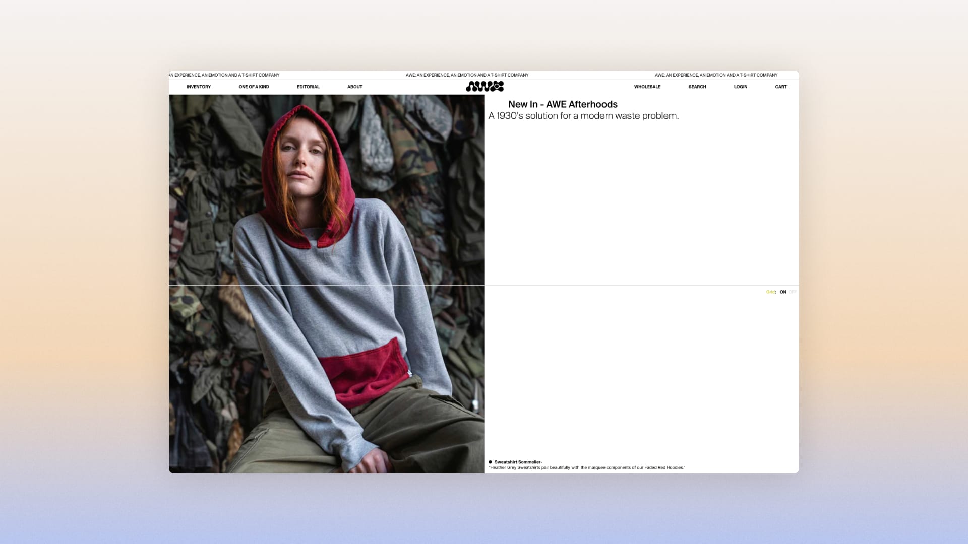 La direction artistique du site impose d'emblée sa personnalité : c'est en elle qu'on se reconnaît, avant même d'acheter. La marque est brute, les couleurs sont tranchées, les textes percutants et affirmés.