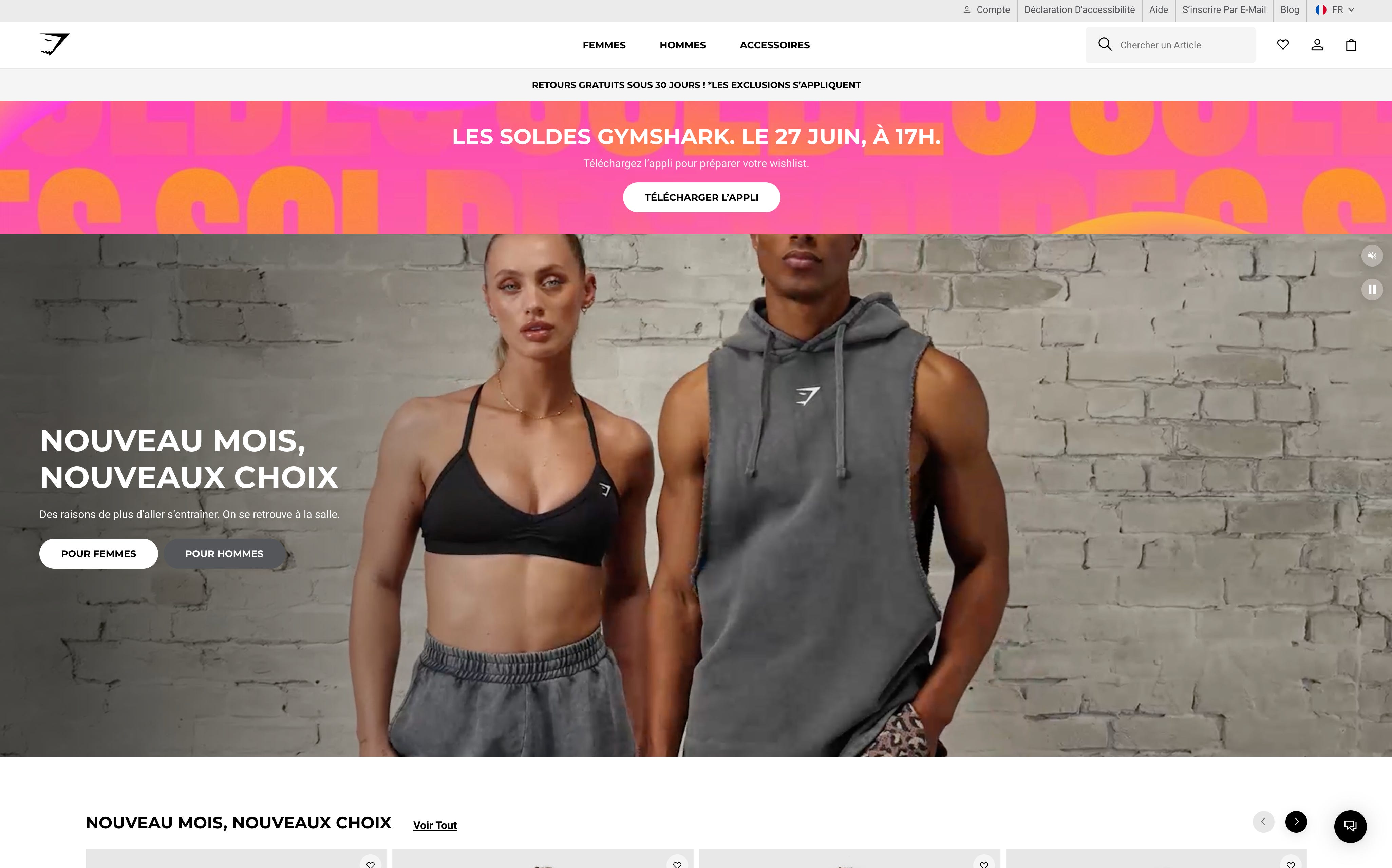 Petite spécificité : Gymshark éditorialise parfaitement bien cet espace en mettant en avant les opérations commerciales ou les nouveautés mensuelles.